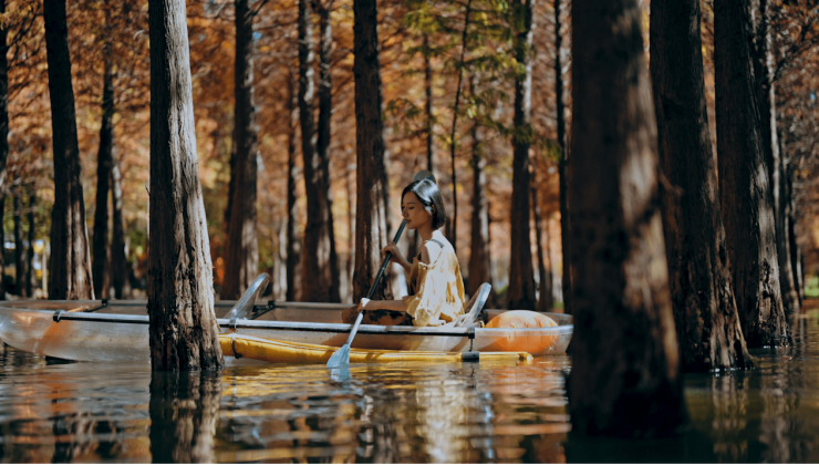 可以是“落霞与孤鹜齐飞,秋水共长天一色”滇池日落;可以是泛舟林下,阳光透过水杉林洒下一缕缕金黄的海洪湿地公园;可以是与金色相对,璀璨霓虹交织的公园1903……秋日的度假区,是不可错过的“美拉德”仙境。