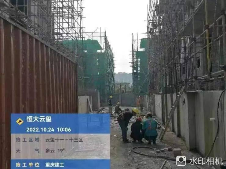根据恒大地产官微10月24日发布的工程进度播报,恒大云玺六区所有楼栋主体结构均已完成封顶、砌体工程已完成。目前,正在进行外立面幕墙施工、地库防水施工、铝合金窗施工、小院围墙基础施工工作。