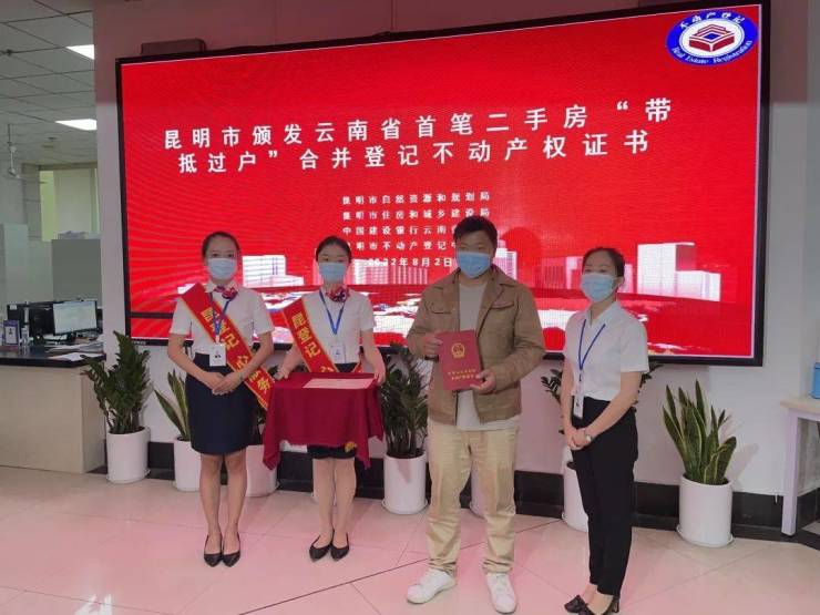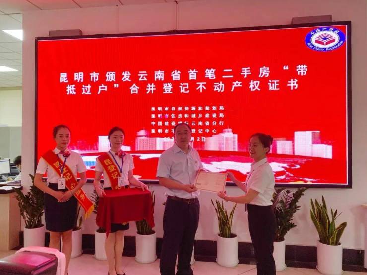 昆明市颁发云南省首笔二手房“带抵押过户”合并登记不动产权证书