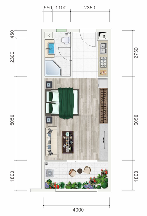 C2户型 一厅一卫一阳台 建面约45.77㎡