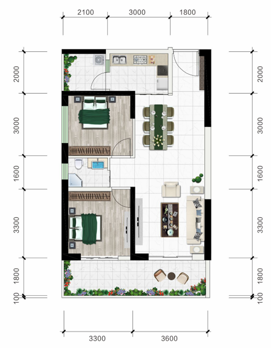 B2户型 两室两厅一卫 建面约89.92㎡
