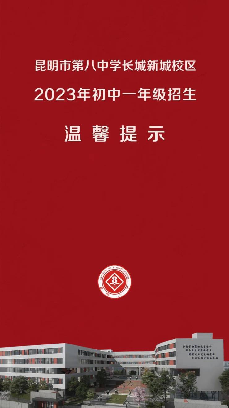 昆明市第八中学长城新城校区2023 年初中一年级招生温馨提示