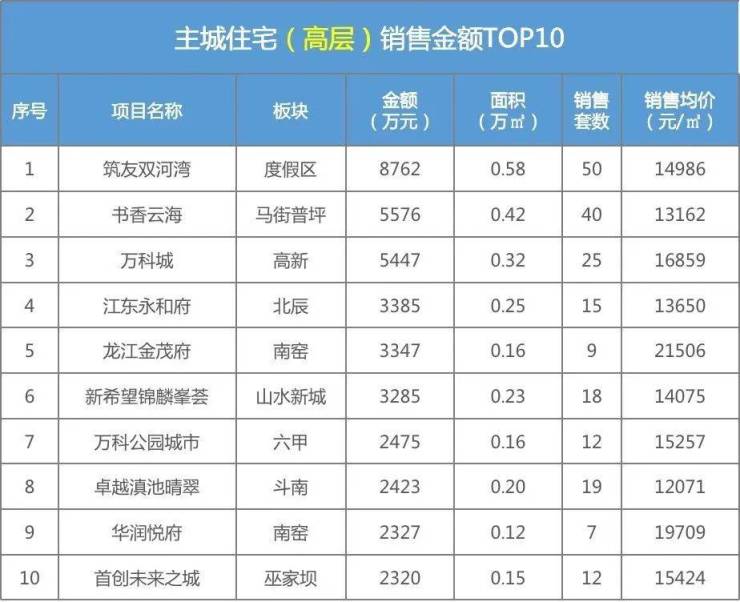 本周住宅成交均价14373元/㎡,环比下降2%。受主城刚需项目成交占比上涨影响,住宅均价窄幅波动。