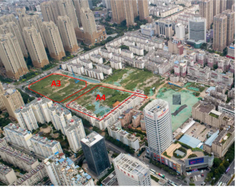 A3地块用地面积9783.98平方米(约14.68亩),总建筑面积96523.86平方米。A4地块用地面积12688.48平方米(约19.03亩),总建筑面积100345.57平方米。