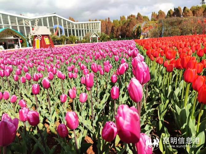 最近哪里的花开得好?当属位于昆明滇池国家旅游度假区的捞渔河湿地公园100万株郁金香不容错过!1月27日,记者来到预展期间的捞渔河郁金香花田,一朵朵或美艳、或优雅、或雍容、或清新的郁金香铺成了一大片美丽的花毯,姹紫嫣红、令人陶醉。据透露,春节期间,捞渔河湿地公园的郁金香将迎来最美赏花季。