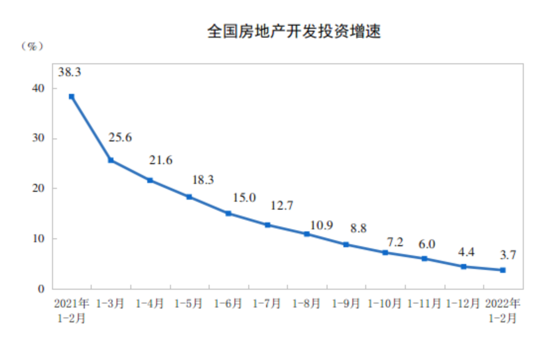 3月15日,国家统计局发布2022年1-2月份全国房地产开发投资和销售情况。数据显示,今年前2个月,全国房地产开发投资增速较2021年全年继续收窄,但房地产开发投资依然保持增长。