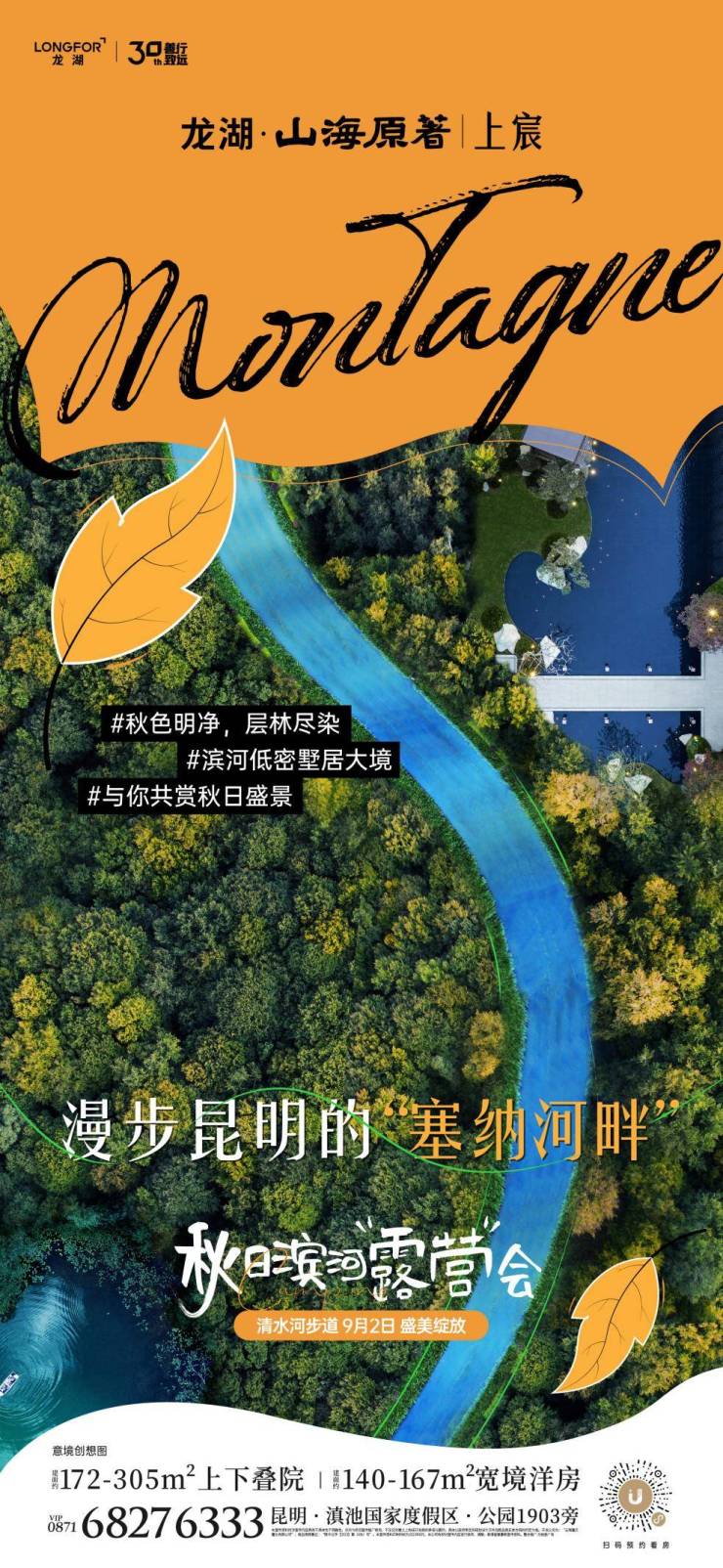 露于山海,趣野自然,9月2日,龙湖·山海原著|上宸秋日滨河露营会暨清水河步道盛美绽放,邀您漫步昆明的“塞纳河畔”,在蓝天白云下享受露营的闲适自在,共赴秋日山海风景大赏。