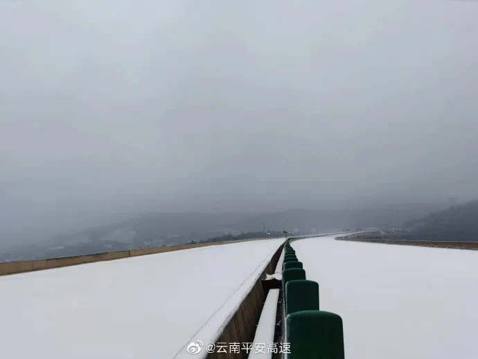 【8时06分】昆武高速因持降雪,道路结冰不具备通行条件,全路段实施双向交通管制,具体通行时间另行通报。
