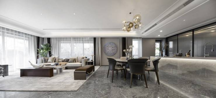 锦粼天序现在热售的建面约239㎡【麒麟阁】采用了LDKG一体化设计,在这样的会客厅,无论是开私人PARTY,还是招待亲朋,空间都绰绰有余。约14.35米南向面宽,驻足于此,室内空间和窗外景色相互交融,无界视野,感觉全世界都在脚下;媲美丽思卡尔顿的三大行政套房,家人私密,悉数照顾;塔尖品位,优雅自彰;