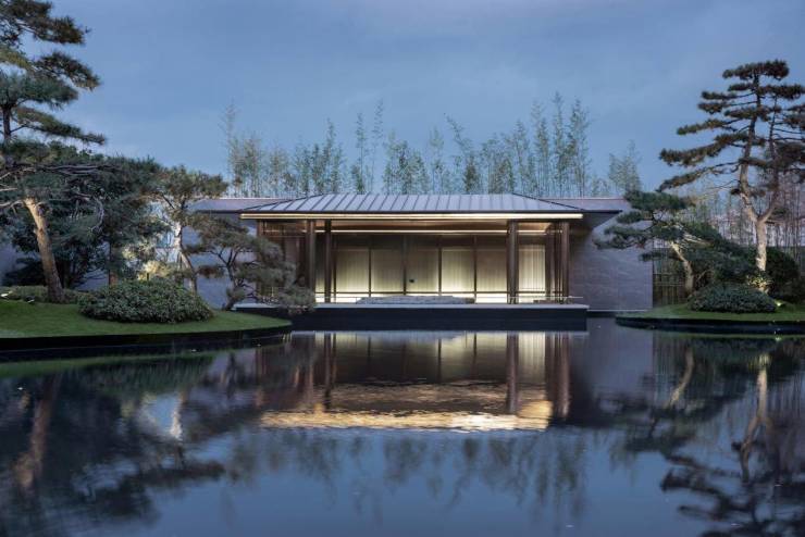 约33米官邸大门,遵循沐王府规制,再以泗水归堂礼仪,使得内外空间场景转化。门外是城市与繁华,门里是静谧与诗意。