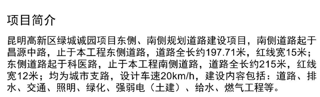 项目名称:昆明高新区绿城诚园项目东侧、南侧规划道路建设项目