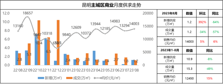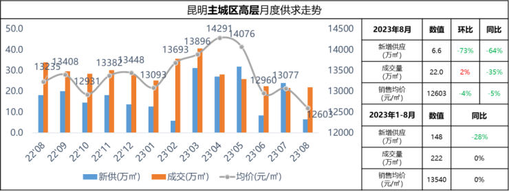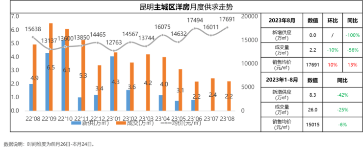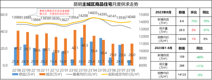 2023年8月昆明楼市:本月整体市场环比量平价稳 楼市处于筑底阶段