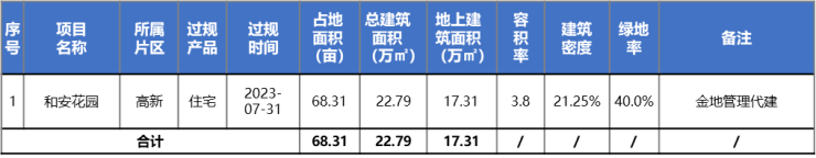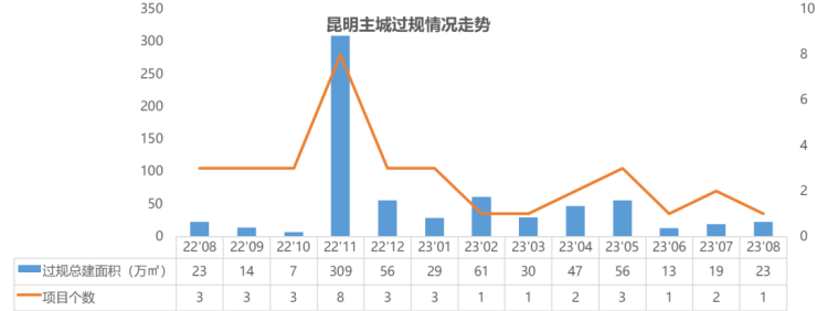 8月昆明主城仅1个项目过规,总建面22.79万㎡;为高新区金地代建的中南智在云辰项目,属工规证注销后的再次过规。
