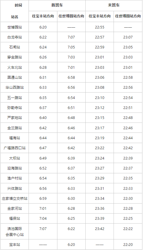 (三)各站首末班车时间在站外导向和站内电子显示屏、公告栏内公布,请乘客合理安排出行时间。