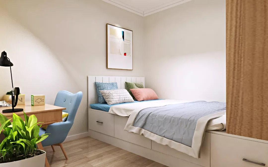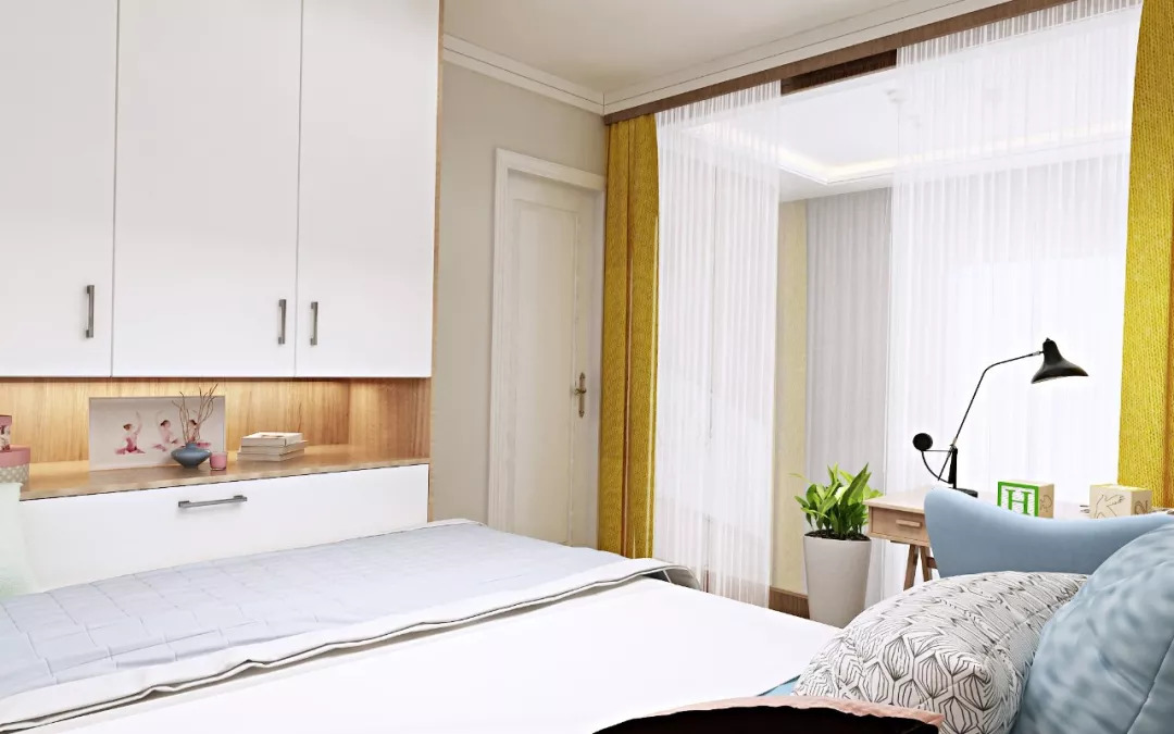幸福的核心是简约、自然、宁静的心态以及轻松的家庭生活,于静谧清新的感受中触碰心底最柔软的角落。卧室白色的墙面,白色的榻榻米一张原木色的桌子,让卧室看上去格外简洁开阔,无需多余的装饰,就能把雅致凸显得酣畅淋漓。