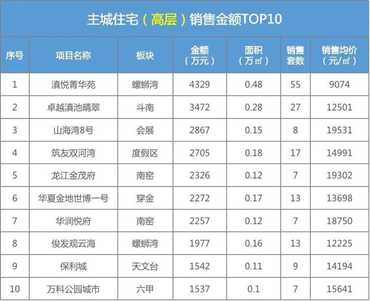 昆明主城住宅成交TOP排行(高层)