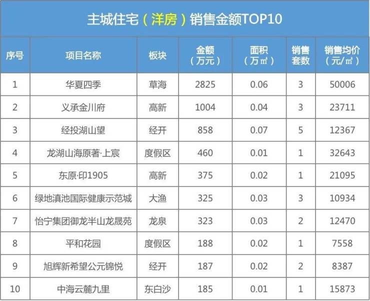 昆明主城住宅成交TOP排行(洋房)