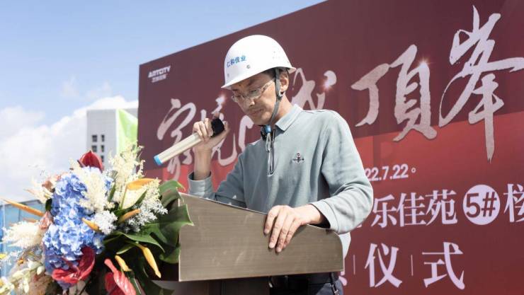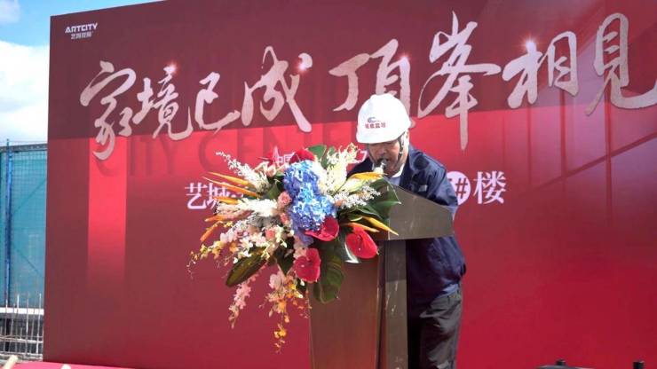 首先,艺城控股艺城春城玖號项目总经理李国林先生对此次仪式发表讲话,他深知广大业主和业界朋友们对艺城·春城玖號项目深有期盼,深感责任之重大。尤其在市场大环境的影响下,依然要保证工程高质量的按时完成。因此建设施工团队本着品质为先、追求先进的建设精神,以骄傲的艺城速度和艺城品质,终将5#楼顺利封顶,不仅为广大业主呈现出了经得起检验的人居样板,更希望为城市中心奉献出值得称赞的留名作品。