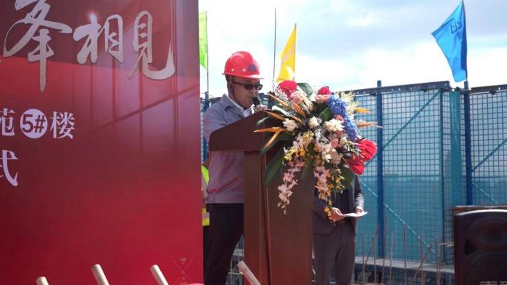 紧接着,贤铭建设有限公司项目经理龙永彬先生、云南城成建设监理有限公司监理工程师陈思东先生纷纷上台对到场的各位及施工团队的所有同事们致以慰问及感谢,对每位员工长久以来在项目勤勤恳恳、兢兢业业的工作赋予了肯定!并针对5#楼的后续工作及其余楼栋的建设工作提出严格要求,对于施工的规范化、用材用料的精细化、团队管理的标准化等再次进行重申。