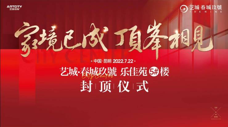 2022年7月22日早10点18分,承载着各位业主、各方领导、施工团队的期盼与祝愿,“家境已成·顶峯相见”——艺城·春城玖號 乐佳苑5#楼封顶仪式盛大举行。