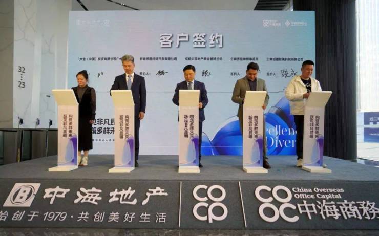 当天下午,昆明市商务局副局长马晨、昆明市投资促进局副局长边莹、官渡区人大常委会主任赵昆、官渡区政协主席赵智宏、官渡区人民政府副区长罗春元等领导及中海发展相关负责人一同按下启动键,伴随着倒计时“三、二、一”,中海国际中心正式入市亮相,第一批4家企业也正式签约入驻。