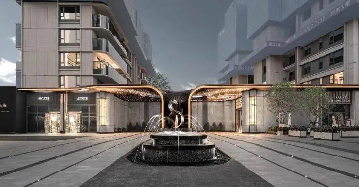 进入项目第一眼的惊艳是来自于社区主入口的呈现:约37米,高约6米的“双C”造型大门,奢配意大利范思哲黑奢石底座,高定氛围感扑面而来。