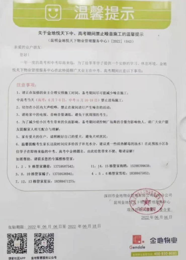 金地智慧服务云贵区域公司以行动为考生保驾护航