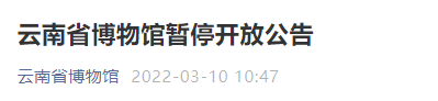 2022年3月10日,云南省博物馆发布公告将于3月11日(周五)暂停开放。