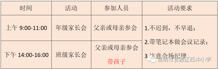 2.集中培训结束后,各班家长回学校召开班级家长会。