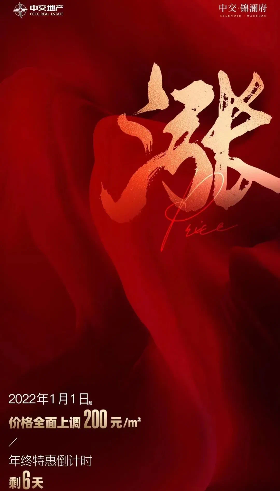 中交·锦澜府价格全面上调200元/平方米,目前项目均价13500—14500元/平方米。