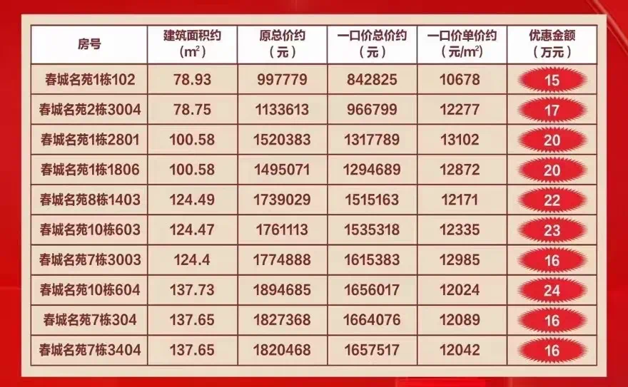 碧桂园·春城映象三期全线产品上调800元/平方米,目前项目在售特价房源价格约10678-13102元/平方米。