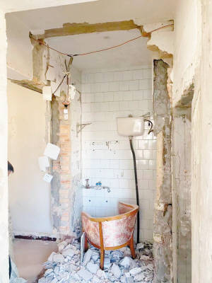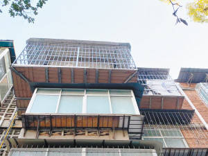 记者在省歌舞剧院宿舍区一处房屋装修现场看到,中介将阳台一侧的墙面拆除,并以简易钢结构将地板向外延伸了约2米,屋内的承重墙也遭到不同程度的破坏。经过这样一番操作,该房屋从原来的43平方米增加到55平方米。装修工人称,改扩建后,房屋可以从原来的一室一厅一卫增加到三室两厅两卫。