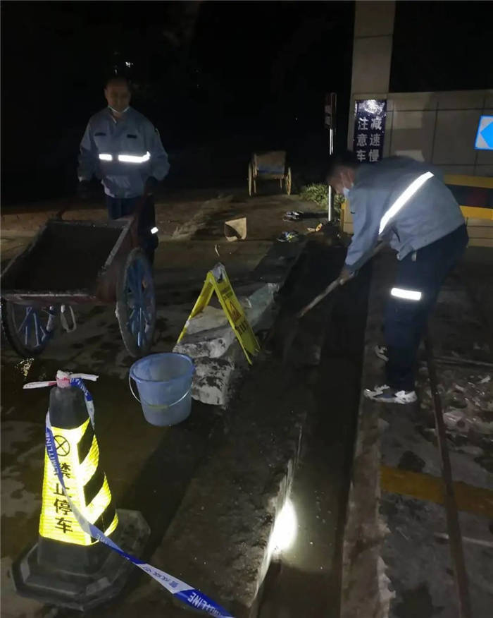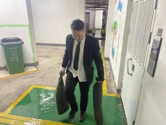 经工程人员现场判定返水系统因降雨水流过大,污水倒灌所致。任洲池立即协助工程人员疏通管道,随后独自将业主户内卫生间里的污水打扫,并将卫生清理干净。虽是阴雨天气,管家任洲池汗水早已浸透衣服,身上沾满了灰尘及污泥。