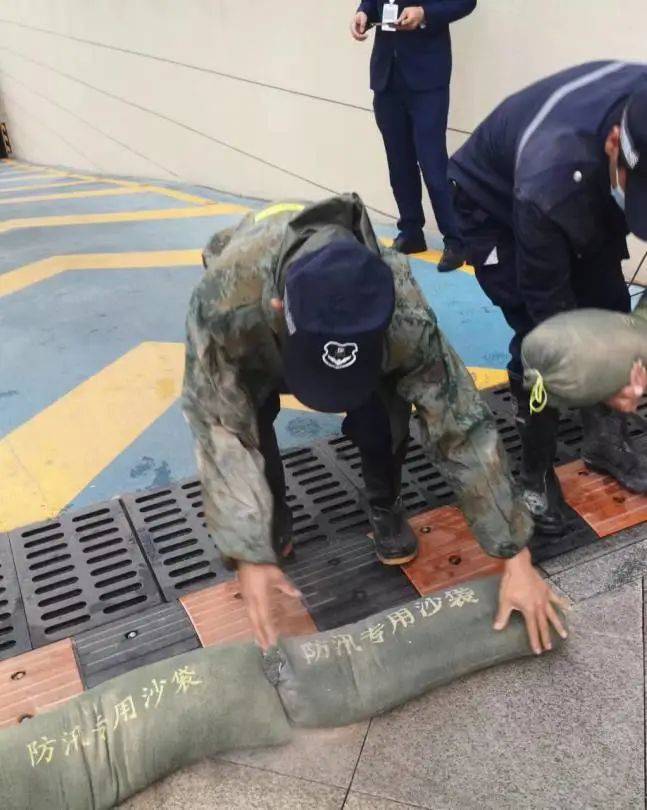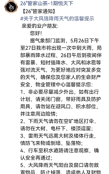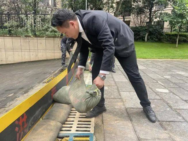 2022年5月28日,持续的强降雨天气给园区雨水管网带来极大的压力。当日管家已组织安全人员对防洪设施进行了加固。