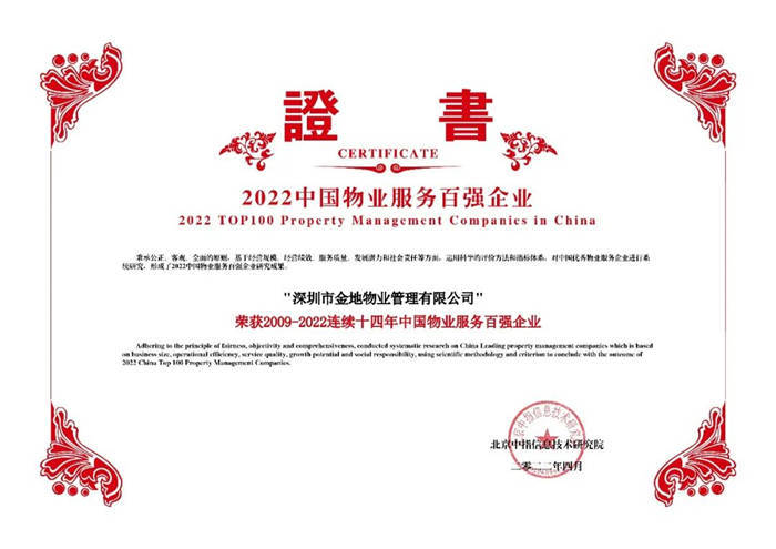金地智慧服务集团成立于1993年,系中国物业管理一级资质企业,中国物业管理协会名誉副会长单位,是一家集物业管理服务、资产和客户资源运营于一体的企业。服务品质在行业内有口皆碑:金地智慧服务2009-2022连续十四年荣获中国物业服务百强企业;十一次获得中国物业服务百强企业服务质量先进企业榜首;品牌价值全国第二;2022中国物业服务百强企业服务规模TOP10;2022中国物业服务百强企业经营绩效TOP10;2022中国物业服务百强企业服务规模TOP10。