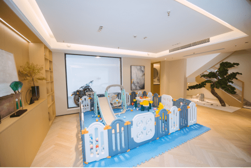 因此,未出生的小朋友在负二楼有了自己的专属游戏厅,这里空间足够宽敞,可以放置小朋友的东西,也无楼梯的安全隐患,更便于小朋日后玩耍。
