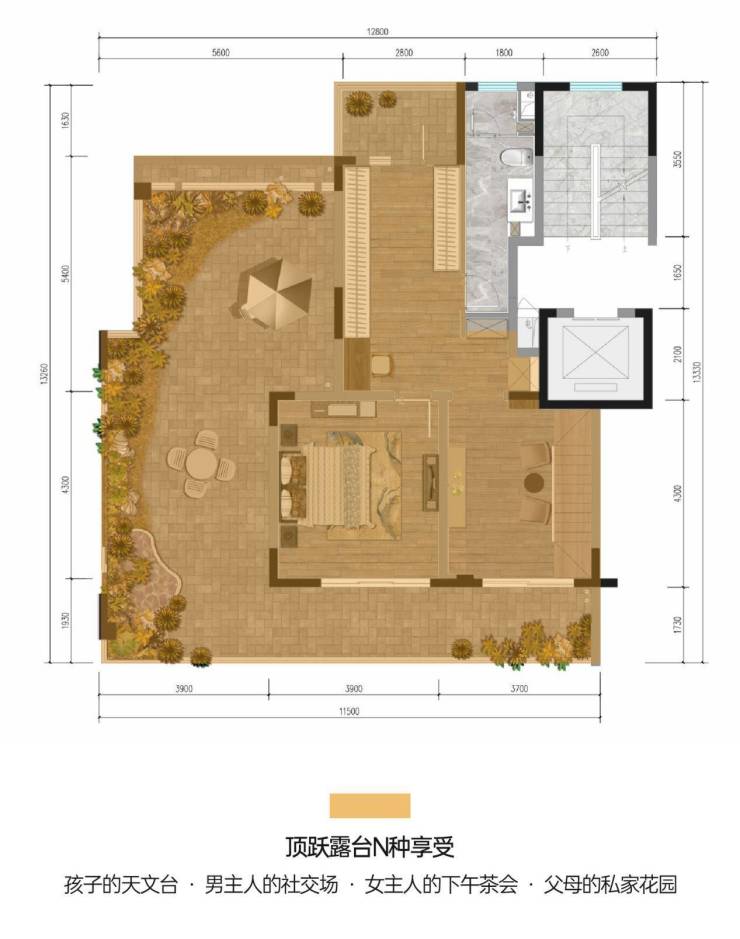 这里也可以是阳光会客厅、可以是植物观光园,可以是休憩胜地、也可以是浪漫空中餐厅,植花种草亦或者观星赏月,将天地之间的自然逸趣,纳入居者胸怀。