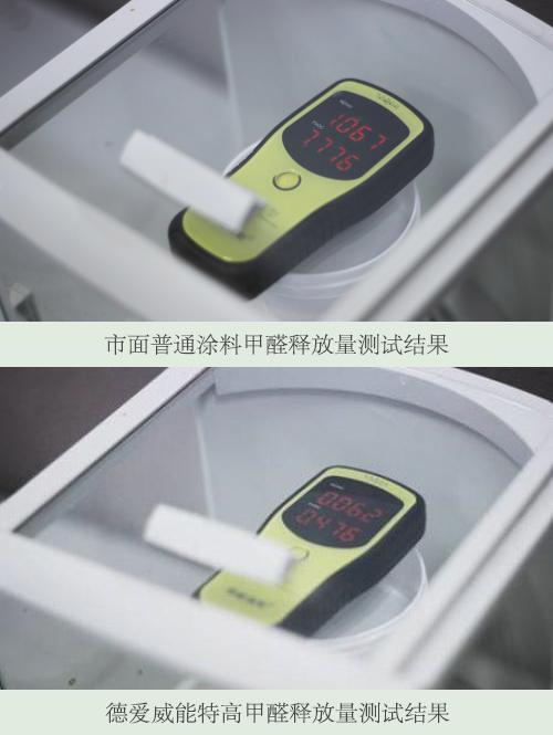 涂料产品的使用中,消费者最关注的是安全环保无毒。甲醛含量和有害挥发物的含量,关系到人们的身体健康。所以我们对Caparol德爱威能特高墙面漆的甲醛含量进行了测试。