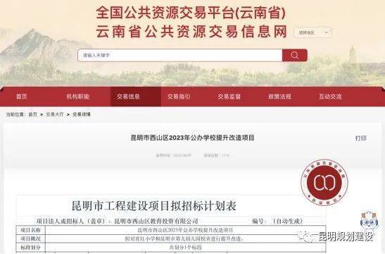 云南省公共资源交易信息网近日发布的信息显示,昆明市西山区将启动2023年公办学校提升改造项目。