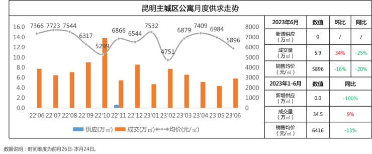 2023年6月昆明楼市:市场热度下降 供应成交稍有下滑