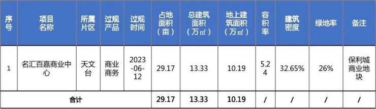 6月仅1个项目新过规,为官渡方旺片区保利城项目商业地块,计容建面10.19万方。
